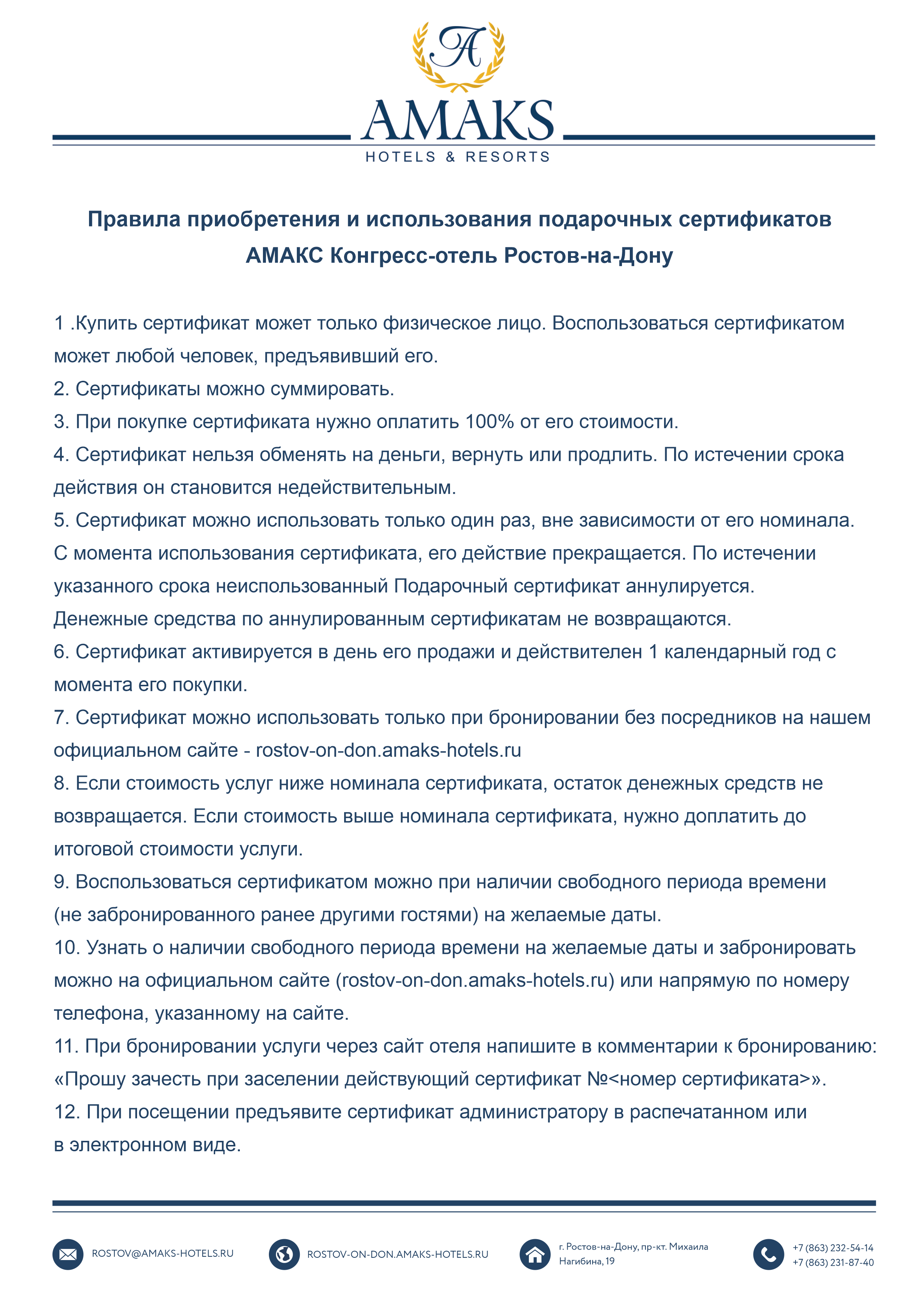 - Сертификат на проживание в комфортабельных номерах нашего отеля с открытой датой